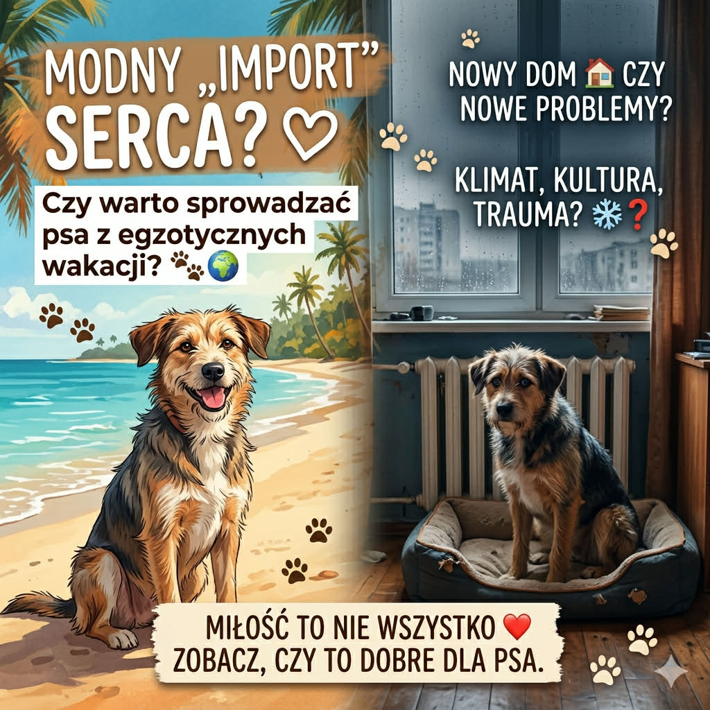 W mediach społecznościowych coraz częściej obserwujemy pewien trend: zdjęcia z lotnisk, wzruszające filmiki z luku bagażowego i historie o „uratowaniu” psa z plaży w Tajlandii, Bali czy odległej wioski w Afryce. Choć motywacja jest piękna i płynie z najczystszej empatii, warto zastanowić się, czy ten rosnący trend jest rzeczywiście dobry dla samych zwierząt.